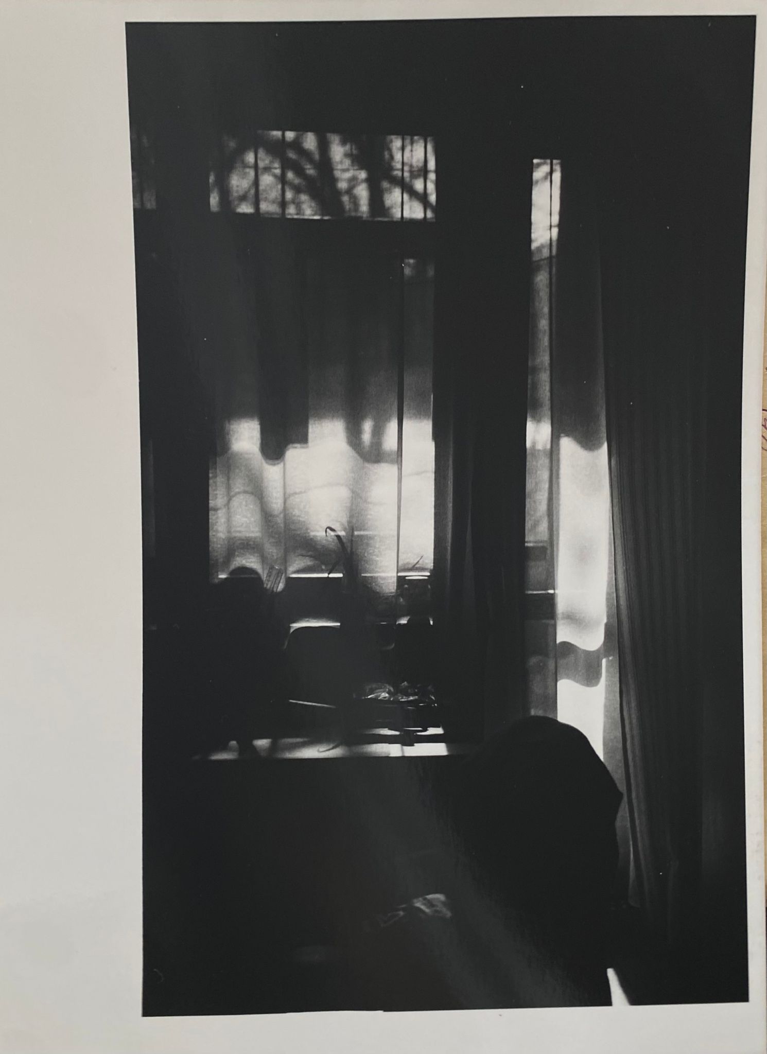 While light was my central theme, my work also touched on ideas of reflection, symmetry, and the passage of time. I was drawn to moments where light revealed something hidden—a fleeting expression, a pattern on a wall, or the delicate shadow of a flower. I experimented with double exposures, negative prints, and collage, always looking for new ways to express the duality of light and dark.